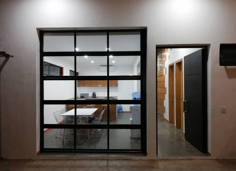 El proyecto son oficinas localizadas en el aeropuerto de Guadalajara, cuenta con área de recepcion al ingreso, área de espera, sala de juntas y oficinas. El uso de materiales como madera permite la calidez en el espacio.