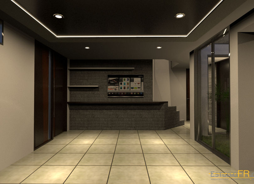 La vivienda cuenta con un jardín en el centro para ventilar e iluminar los espacios carentes de esto. La cochera se localiza a un costado para dejar libre la fachada.